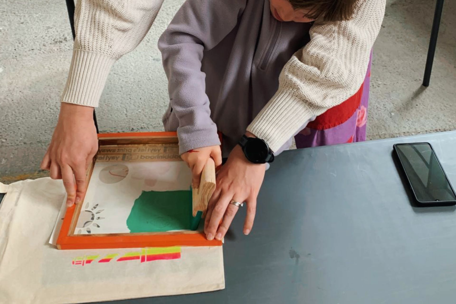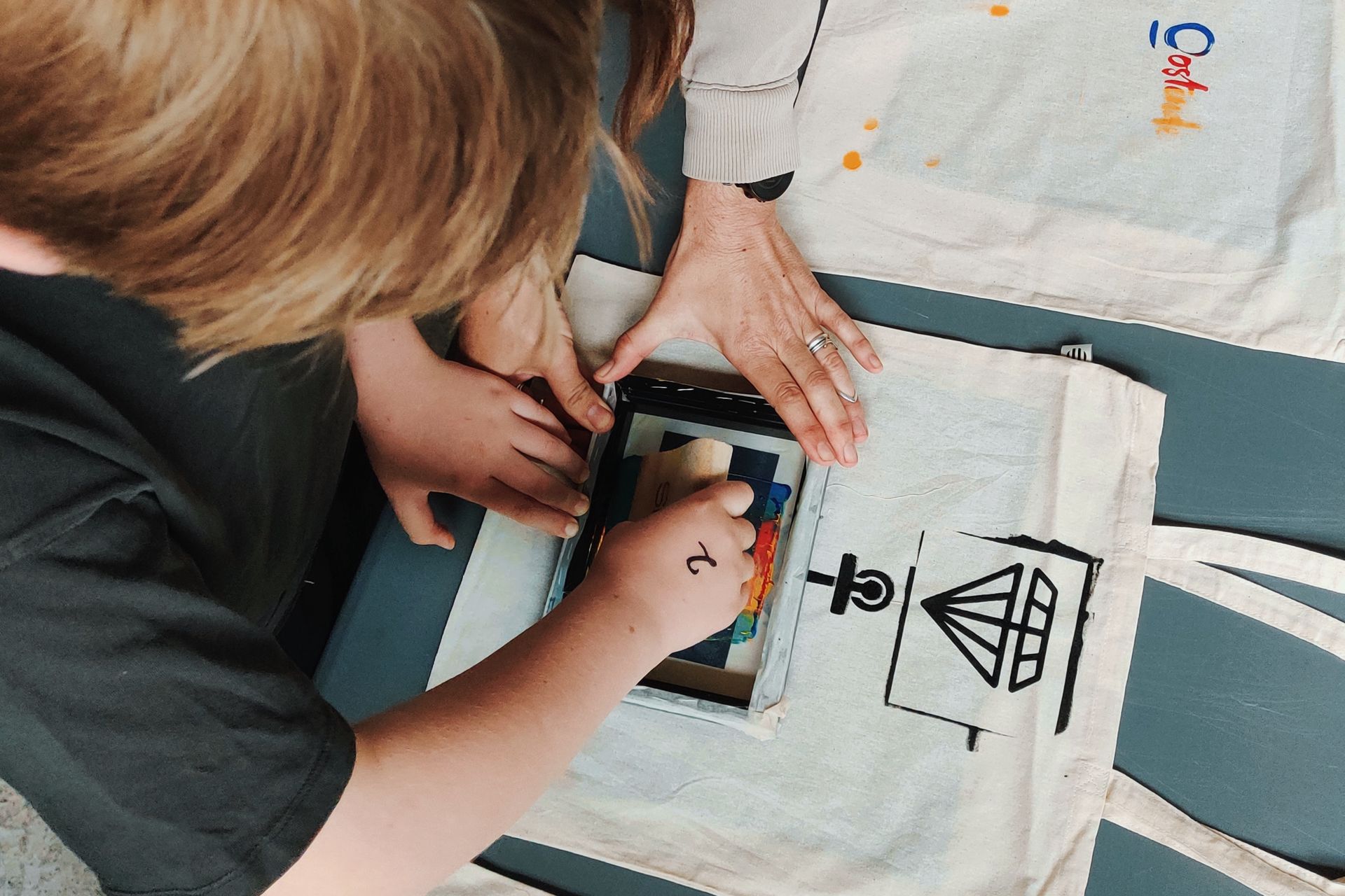 Stel je voor: jij en je (klein)kind, nichtje, petekind of favoriet jonge familielid, samen gebogen over een zelfgemaakt ontwerp, met verf tot aan jullie ellebogen en een brede grijns op jullie gezicht. Dat is onze zeefdrukworkshop voor groot en klein in een notendop.